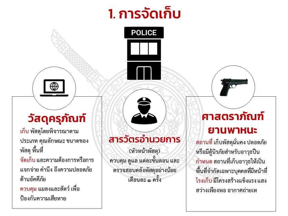 3. ตรวจสอบและตรวจนับอาวุธยุทธภัณฑ์ของสถานีตำรวจเพือ่ให้มีความพร้อมต่อการใช่งานในภารกิจประจำวัน