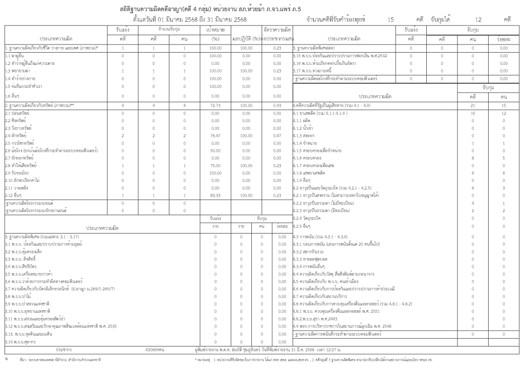 ข้อมูลผลการดำเนินงานเชิงสถิติด้านคดี